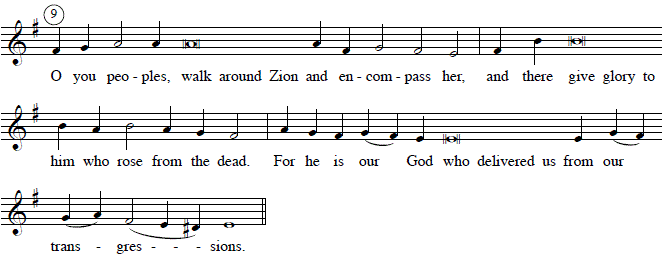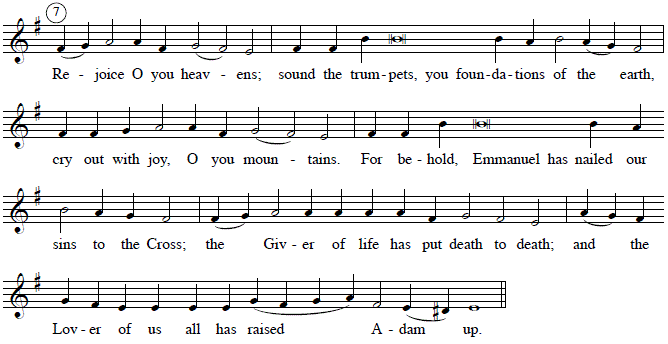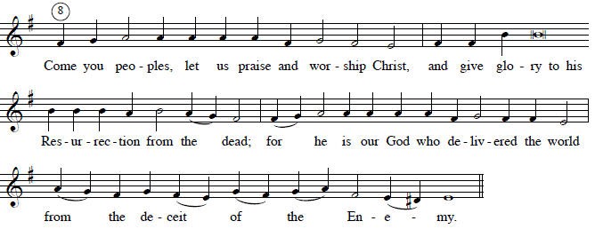 Finally, we sing "Glory, now and ever" to the samphlasen verse melody, and the dogmatikon in Tone 1 to the samohlasen sticheron melody.