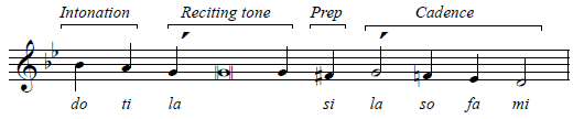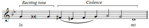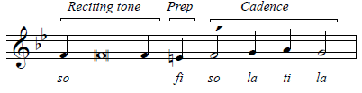 The reciting pitch plus the notes of the cadence (la - si - fi - si - la - ti - la - mi) sound exactly like do - ti - la - ti - do - re - do - so, so they are actually easy to sing. Try it!