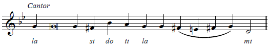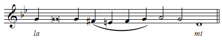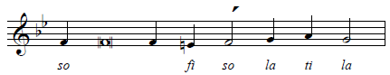 This particular melody uses the melodic minor scale, which raises fa by a half-step (to fi) and so by a half-step (to si). We will point these out below.