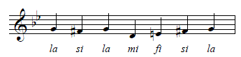 But the Western musical tradition is very attached to the sound of sol - la - ti - do leading to the starting pitch, and we can get this by raising fa a half step (to fi), and sol a half stop (to si), like so: