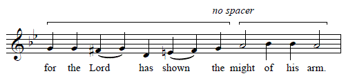 and repeat until it feels very natural. The next part is a "spacer" that serves the place of a reciting tone; it is just a very easy la - ti - do - ti - la: