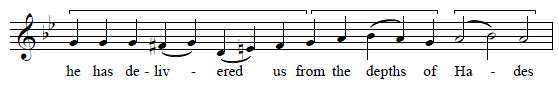 - It doesn't have any obvious reciting tones (constant pitches on which a variable amount of text is sung).