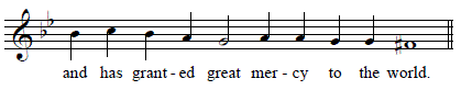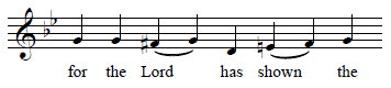 The entire hymn begins on la, and ends a half step lower. But first we need to make sense of the sharps and flats, or "accidentals."