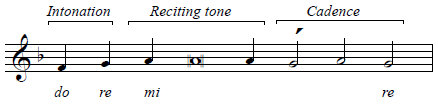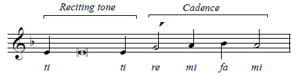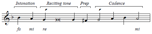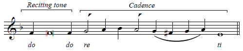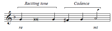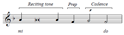 The final phrase consists entirely of the reciting tone and the cadence: