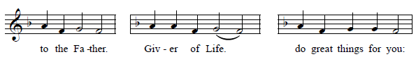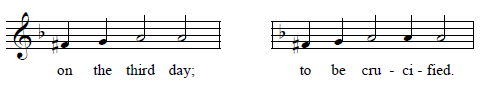 The first two phrases of the Tone 4 samohlasen melody are very simply, consisting of a reciting tone and a cadence:
