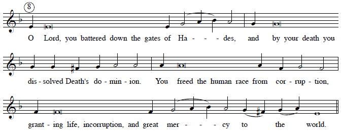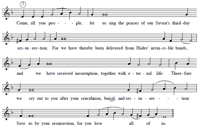 Finally, we sing "Glory, now and ever" to the samohlasen verse melody, and the dogmatikon in Tone 4 to the samohlasen sticheron melody.