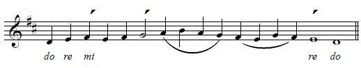Here is the samohlasen verse melody in Tone 7. Be careful: although it is tempting to start on do, the key signature (D) actually means we start on mi.